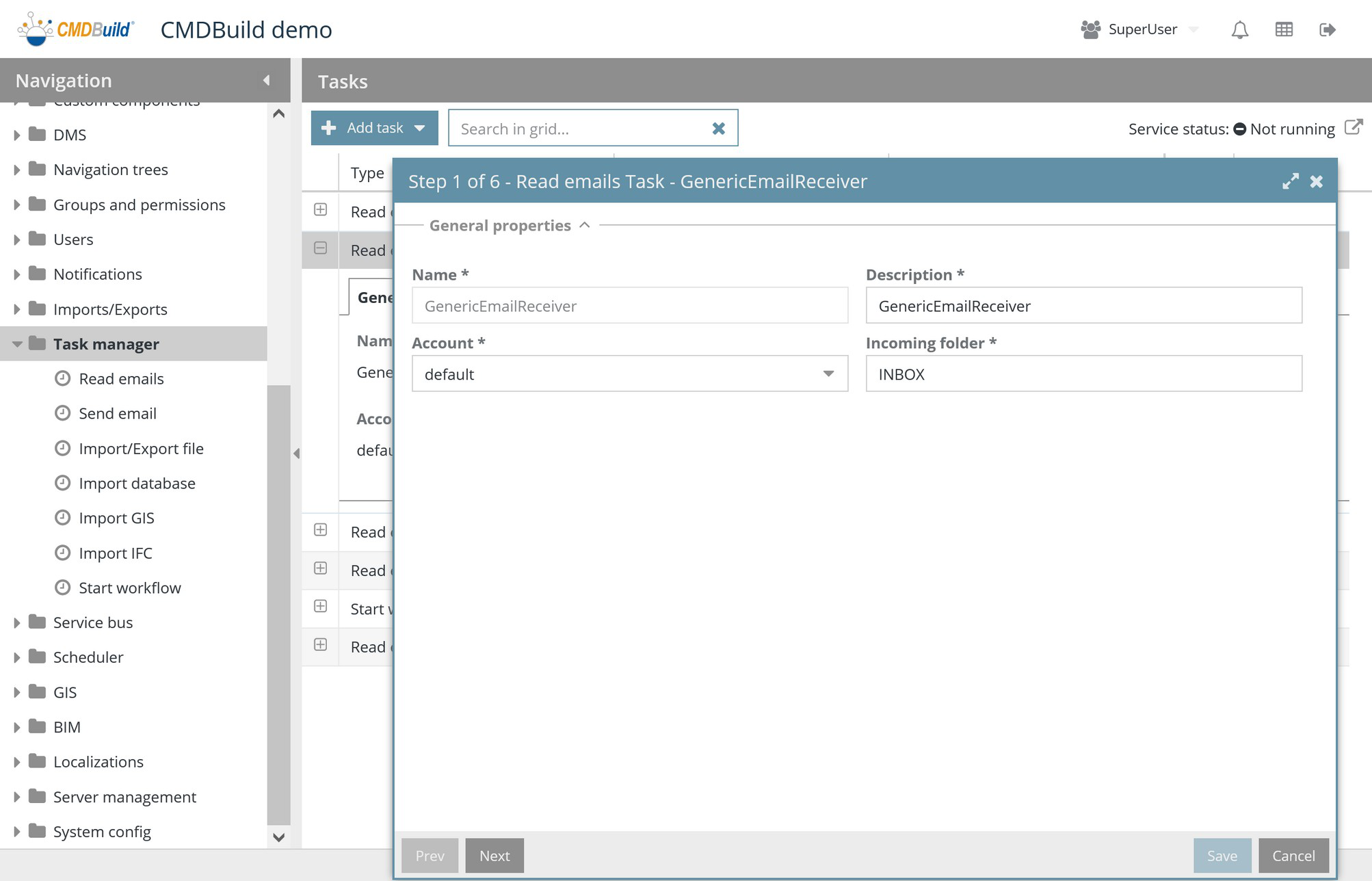 The task for the email incoming waits for the emails to be filed into a specific IMAP folder of a certain account, verifies if it coincides with any prearranged filter criteria and carries out the recommended instructions.