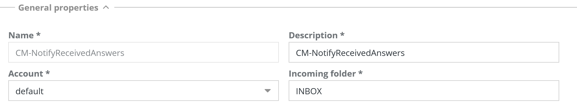 - Mapping of fields: Indication of the email fields that have to be reported in the starting process