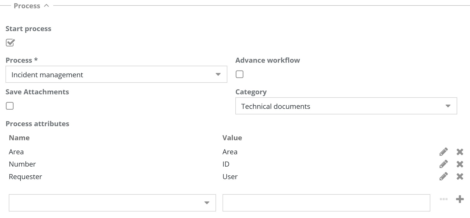 - Category: It requires to select the category that should be associated with the attachment (all the entries of all the documental categories are available, if configured for the selected process)