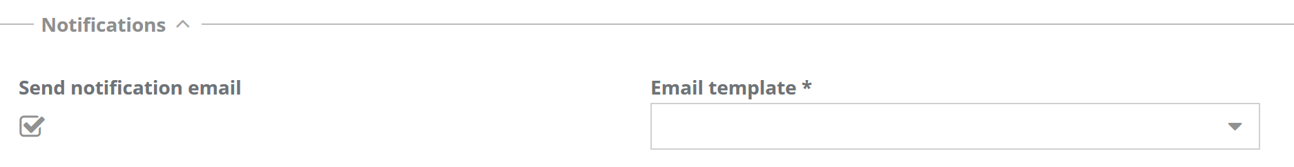 - Email template: it requires to select one of the templates preconfigured with the proper function (see chapter relate to the e-mail management menu)