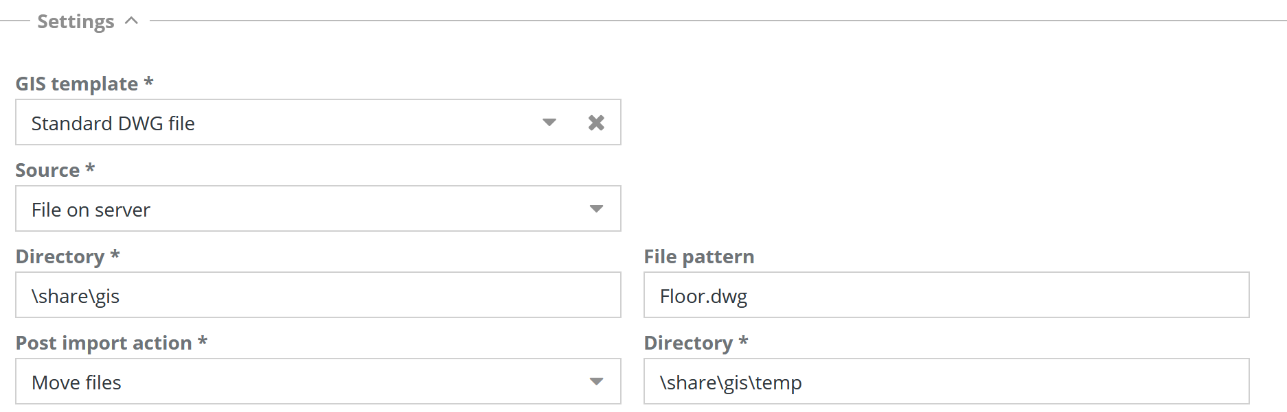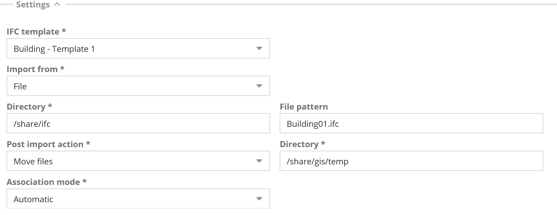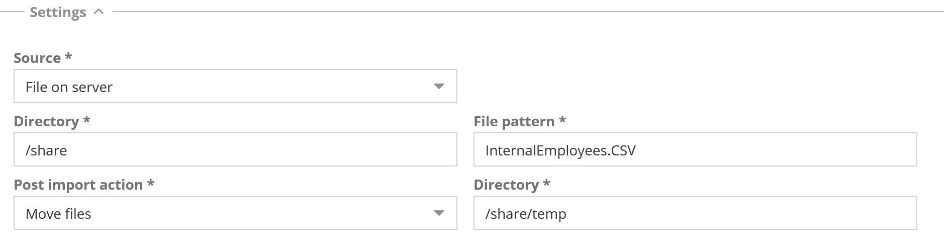 - Post import action: it deletes or disables the file (it is renamed with a predefined pattern) or move the file (in this case the new folder is required) or no action