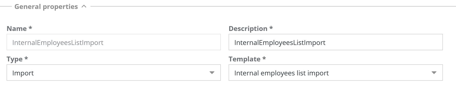 - Post import action: it deletes or disables the file (it is renamed with a predefined pattern) or move the file (in this case the new folder is required) or no action In case you import from a project, the following information is required:
