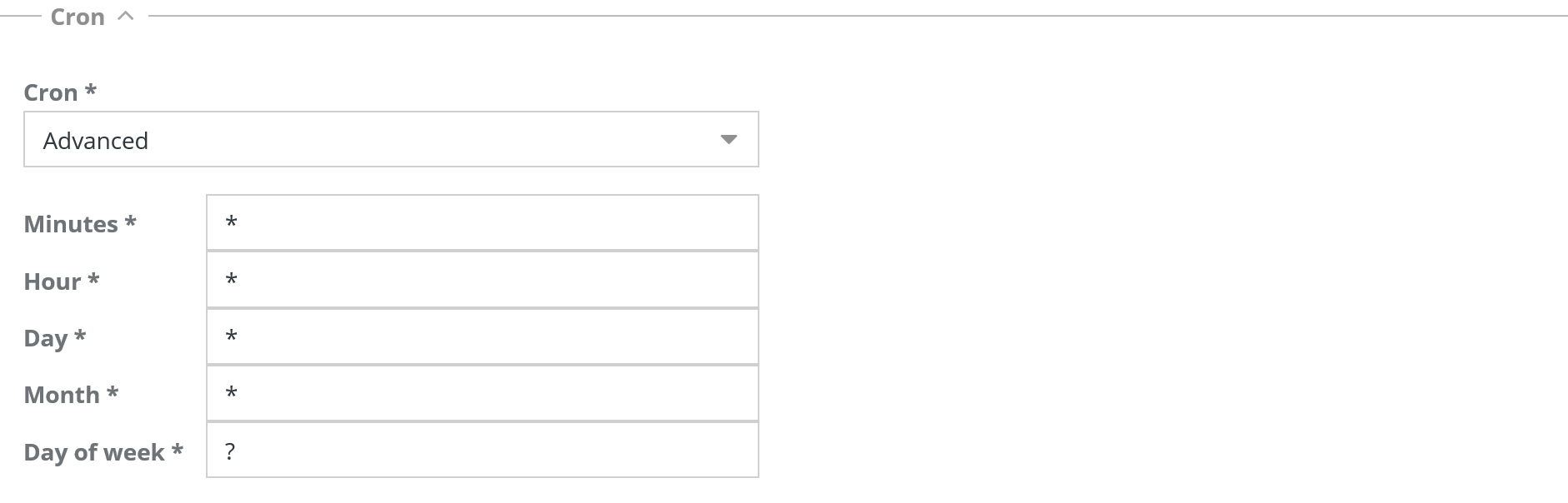 - Advanced mode: with the same options and the same syntax as the schedule tool “cron”