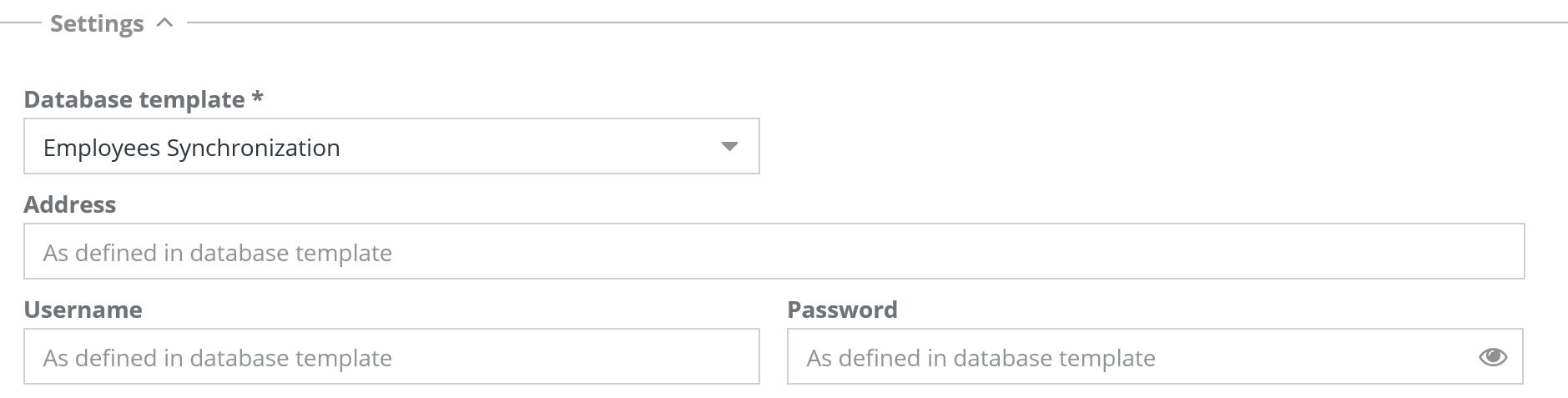 - Username: access username to the external database (the one set in the template can be kept as default)
