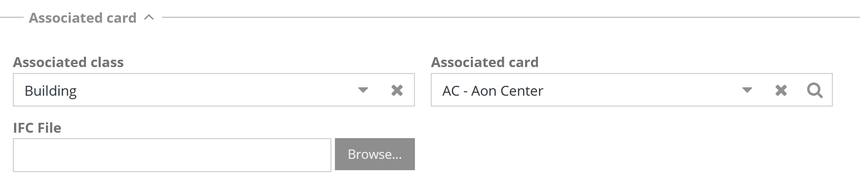 - Related card: it requires to select the CMDBuild class selected in the previous field; it is usually a building or a complex of buildings