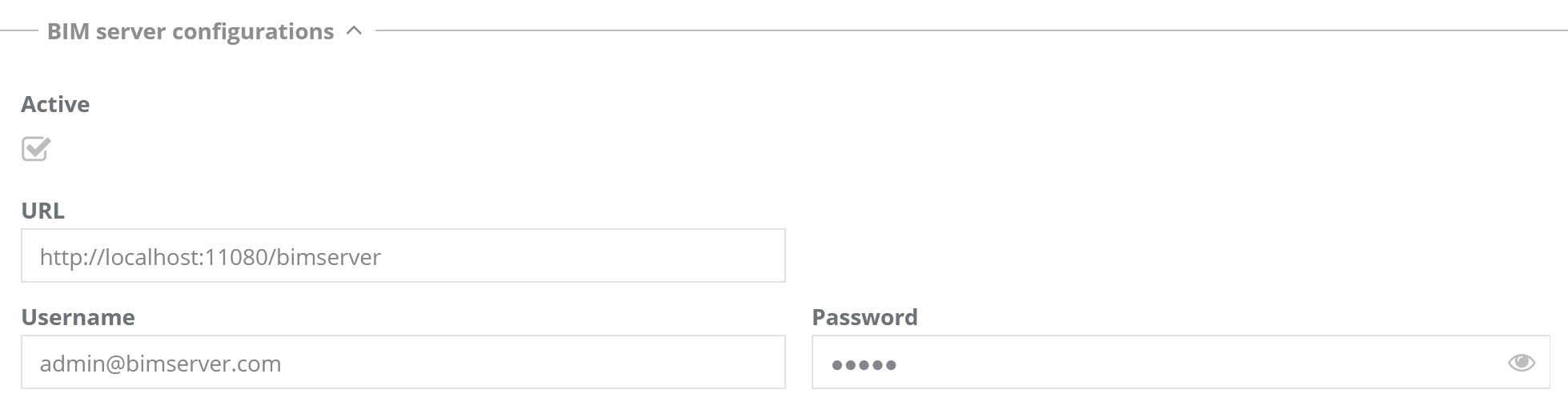 - IFC file: it requires the uploading of the IFC file to in order to file in into BiMserver