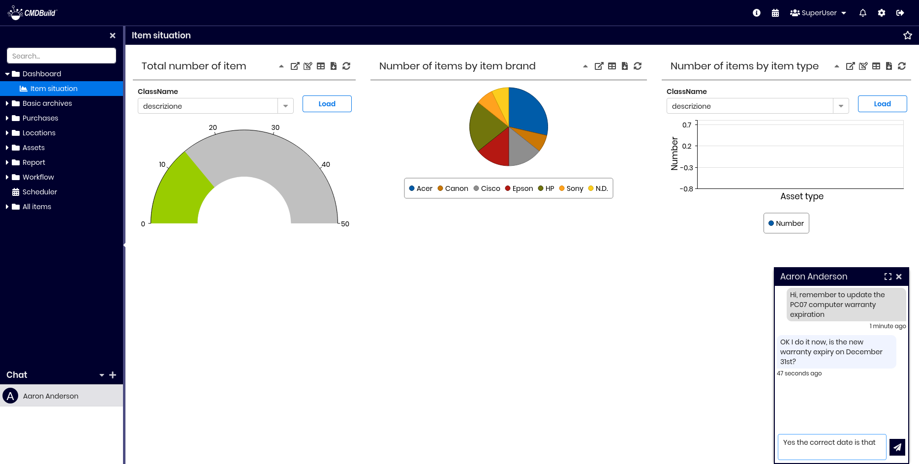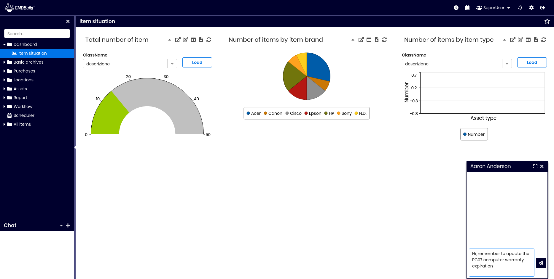 CMDBuild includes an integrated chat that allows operators to communicate, report activities, provide feedback, resolve doubts, and more.